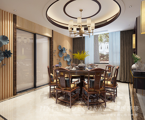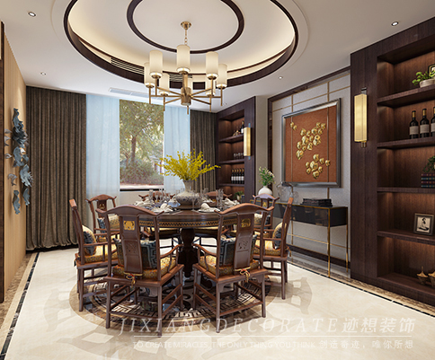 客廳要用圓桌,吊頂形狀和餐桌形狀相呼應(yīng)。